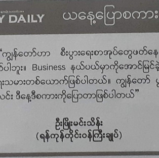 သတင်းစာသမား မီဒီယာသမားဆိုတာဟာ မိမိရဲ့ မူဝါဒနဲ့ အမှန်တရားပေါ်မှာ ရပ်တည်ရမယ် ရပ်တည်သင့်တယ်လို့ ထင်ပါတယ်။ ယခုကတော့ ဖွရပြီးရော လုပ်နေပုံပါ။