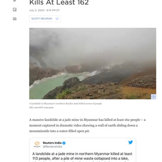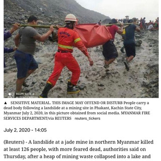 ဒီဖားကန့်မြေပြိုတာကို ကမ္ဘာပေါ်က သတင်းစာတွေ၊ သတင်းဌာနတွေမှာ အကြီးအကျယ်ဖော်ပြကြပါတယ်။ ပြောချင်တာက မပေါ့ဖို့ပါ။